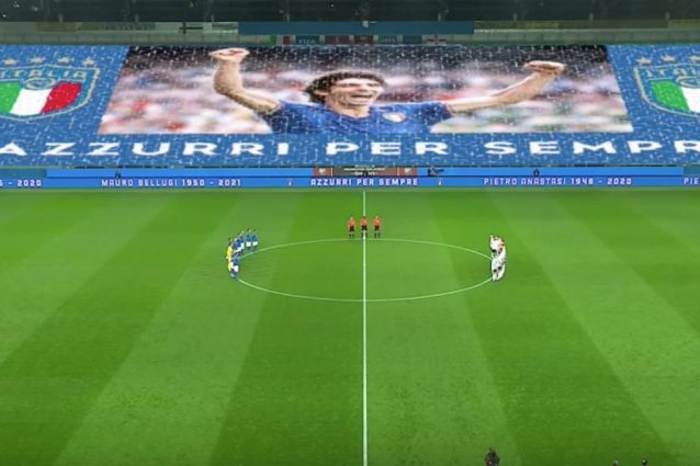 Un minuto di raccoglimento e il lutto al braccio. Prima del fischio d'inizio della sfida tra Italia e Irlanda del Nord è stata osservata una breve commemorazione per i calciatori che hanno fatto la storia degli Azzurri e sono morti di recente. L'annuncio dello speaker dello stadio 'Tardini' si fa toccante quando il ricordo dei grandi del passato che non ci sono più s'incrocia con quello di Daniel Guerini, il giovane giocatore della Lazio (19 anni) morto mercoledì sera in un incidente stradale.