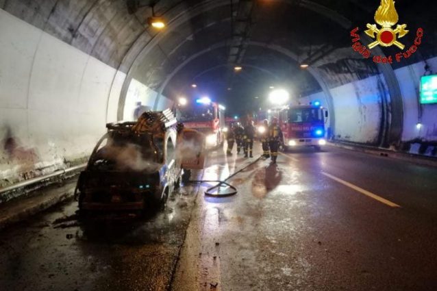 Paura in mattinata sulla strada statale 36 a Perledo, in provincia di Lecco, a causa di un furgone in fiamme in una galleria. I due occupanti del mezzo sono riusciti per fortuna a mettersi in salvo. La carreggiata in direzione sud è rimasta chiusa un paio d'ore per consentire ai vigili del fuoco di domare le fiamme e mettere in sicurezza la strada.