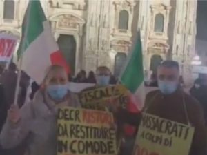 Ristoratori, partite Iva, ambulanti e titolari di attività commerciali sono scesi in piazza questo pomeriggio a Milano per protestare contro l'ultimo Dpcm del governo che impone la zona rossa in Lombardia e la conseguente chiusura delle loro attività. "Siamo tutti sulla stessa barca", la scritta su uno striscione dei 200 manifestanti che hanno riempito piazza Duomo.