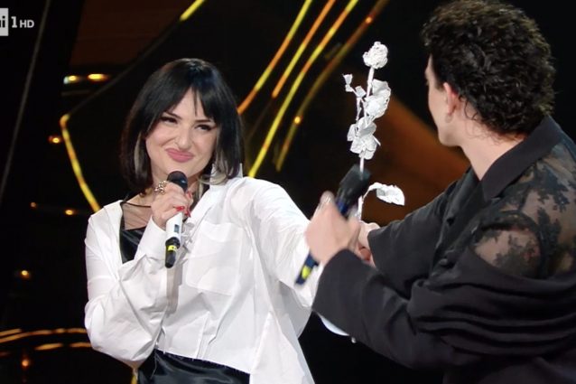 Vestito d'argento e con corona d'allora Achille Lauro, nel terzo quadro pensato per Sanremo 2021, porta sul palco della serata dei duetti il suo personale tributo alla musica pop insieme a Emma Marrone e Monica Guerritore. Il look da Dio con peplo argentato è il simbolo scelto per distruggere i pregiudizi che imprigionano gli umani: "Dio benedica gli incompresi".