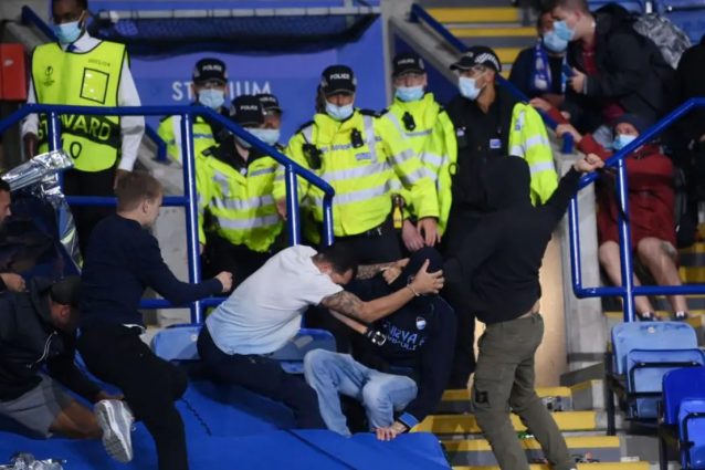 Nove tifosi del Napoli sono stati arrestati in Inghilterra per i violenti scontri che ci sono stati a Leicester prima della partita di Europa League tra gli azzurri e la squadra di casa. Per gli scontri avvenuti nel settore ospiti dello stadio dopo il match, invece, non sono stati effettuati arresti.