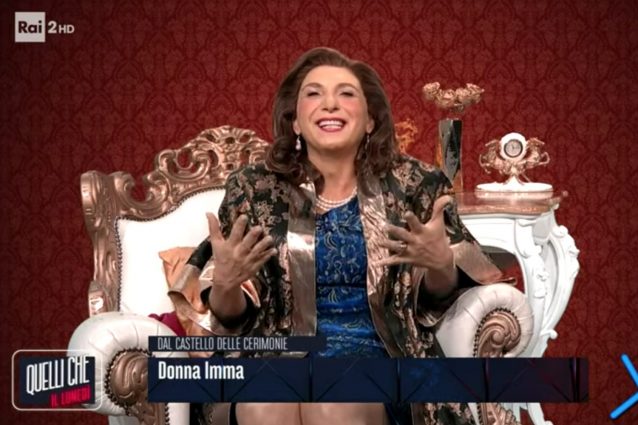 Dopo le imitazioni di Serena Bortone e Myrta Merlino, Barbara Foria presenta un personaggio tutto nuovo nel programma di Mia Ceran, Luca Bizzarri e Paolo Kessisoglu, "Quelli che il lunedì": è la celebre Donna Imma Polese, la regina del Castello delle Cerimonie, l'iconico ristorante kitsch napoletano.