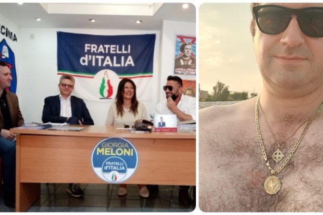 Nella sede dedicata a Giorgio Almirante ci sono i poster con il golpista Junio Valerio Borghese e i simboli della X Mas, e l'esponente locale (ex di Forza Nuova) Paolo Iarlori che posa con la croce celtica al collo.
