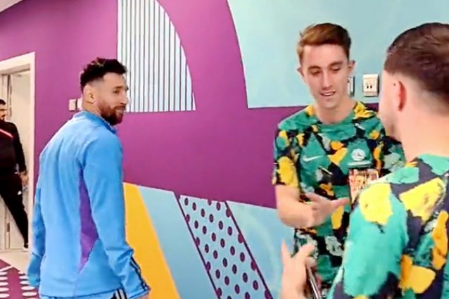 I calciatori dell'Australia hanno atteso Messi negli spogliatoi per una foto dopo la gara con l'Argentina: tre giocatori di Socceroos hanno aspettato che il numero 10 della Seleccìon tornasse per immortalare un momento con il loro idolo.