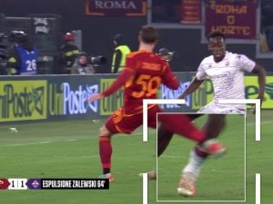 La doppia espulsione ha lasciato la Roma in 9 nella fase più delicata della gara contro la Viola. Il direttore di gara è stato molto deciso nell'estrarre i cartellini ma c'è un episodio nel finale che solleva dubbi.
