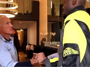 Simpatico siparietto nel ritiro della Francia all'arrivo dei giocatori, ricevuti uno ad uno da Didier Deschamps. Quando si è presentato Thruam, il ct non ha resistito ad una battuta che ha spiazzato il bomber dell'Inter: "No, mister giocavamo in casa..."