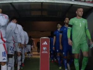 È successo a pochi istanti dall’inizio della partita di qualificazione ai Mondiali 2026 che si gioca in campo neutro, a Debrecen (in Ungheria). Fischi all’inno nazionale israeliano poi compaiono cartelli con la scritta “Stop”.