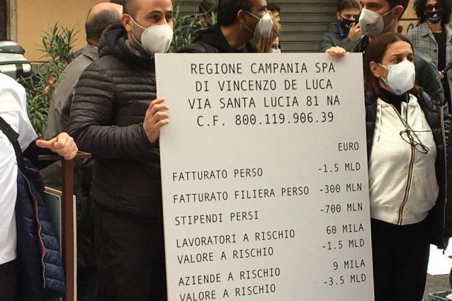 Nuova protesta dei commercianti di Napoli contro il coprifuoco e le chiusure per il DPCM anti-Covid19: luci spente nei negozi alle ore 18 per 15 minuti. Carotta (associazioni Centoviavicaria): "Iniziativa per sensibilizzare cittadinanza e istituzioni sulla crisi dell'economia legata al Coronavirus". Manifestazione dei commercianti anche a Rione Traiano e Bagnoli alle ore 18.