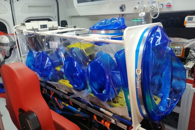 Covid-19, Croce Rossa dona al Cotugno la barella anti contagio