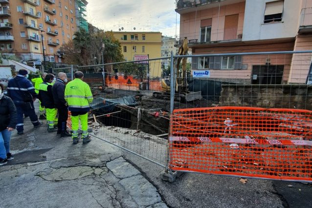 La pioggia della notte appena trascorsa ha causato allagamenti e cedimenti in varie zone di Napoli: all'Arenella i residenti rimasti senza acqua in via Pigna e il cantiere per le fogne si è allagato, e una voragine si è aperta in piazza Canneto, mentre nel Rione Traiano via Adriano, tra le principali della zona, si è completamente allagata.