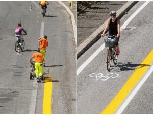 All'Eur è stata realizzata la prima pista ciclabile transitoria di quelle previste dall'amministrazione capitolina. In totale saranno 150 chilometri di piste.
