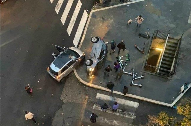 La foto dell'incidente stradale ripreso dall'alto e pubblicata sulla pagina Instagram di Welcome to Favelas si riferisce allo scontro tra due auto, delle quali una si è ribaltata, avvenuto nel pomeriggio dell'8 dicembre in piazza Melozzo da Forlì a Roma. Il bilancio è una donna ferita trasportata in ospedale.