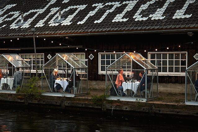 Questo ristorante vegano di Amsterdam ha ideato un modo per far cenare i suoi commensali in totale sicurezza grazie a piccole serre private che garantiscono il distanziamento sociale. Le innovative strutture di vetro sono state chiamate "Serres Sépparées" e permettono anche di godere di una romantica vista sulle acque dell'Oosterdok.