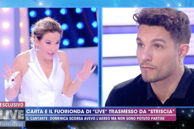 Barbara D'Urso mostra un biglietto aereo per il 3 maggio che avrebbe dovuto portare Marco Carta negli studi di "Live - Non è la D'Urso" e Marco Carta fornisce la sua giustificazione: "Serve un autorizzazione della Regione per partire". Il fuorionda di "Striscia la notizia" mostra cose che sono inequivocabilmente in contrasto con questa versione. Chi è che l'ha sparata grossa, allora?