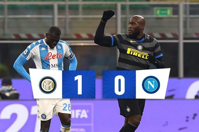 L'Inter batte il Napoli 1-0 nello scontro diretto a San Siro e si avvicina al Milan in vetta alla classifica della Serie A. Tra Conte e Gattuso gara bloccata fino all'ultimo quarto d'ora, quando tutto gira attorno ad un episodio: il rigore assegnato ai nerazzurri per fallo su Darmian e l'espulsione di Insigne per proteste. Lukaku firma l'1-0 dal dischetto, nel recupero palo di Petagna.