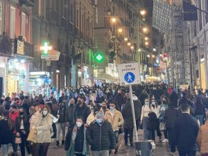 Folle, traffico e caos in tutta Napoli: a meno di una settimana dal Natale, ogni invito al distanziamento sociale e alla prudenza è già svanito. Multe ai negozi per il mancato rispetto delle norme anti Covid, multati anche passanti senza mascherina. Ma il fiume umano riversatosi nelle strade dal Vomero al Centro Storico ha reso impossibile ogni distanziamento.