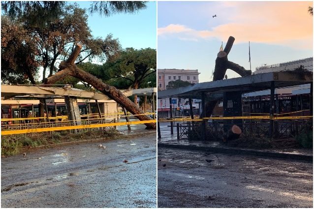 Paura alla stazione Termini di Roma. Un albero è caduto su una pensilina dell'autobus davanti al Piazzale dei Cinquecento e l'area è stata transennata.