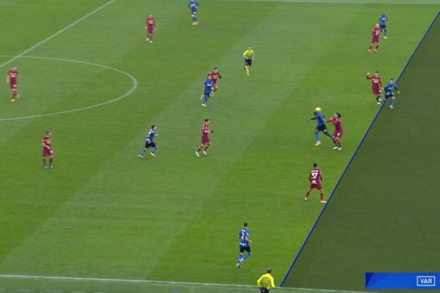 Gli episodi da moviola di Roma-Inter fanno riferimento all'occasione che ha portato al vantaggio dei giallorossi (gol di Pellegrini) e alla rete annullata a Lautaro Martinez verso la fine del primo tempo. Nel primo caso i nerazzurri lamentano un fallo di Veretout su Barella, nel secondo invece non ci sono dubbi sulla posizione di fuorigioco dell'argentino.