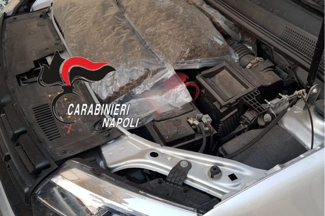 Un giovane di 29 anni, incensurato, è stato arrestato dai carabinieri a Marigliano, nella provincia di Napoli, con l'accusa di detenzione di sostanza stupefacente finalizzata allo spaccio. Nella sua automobile, i militari dell'Arma hanno rinvenuto 11 chili di droga nascosti nel cofano, nel vano della ruota di scorta e sotto un sedile.