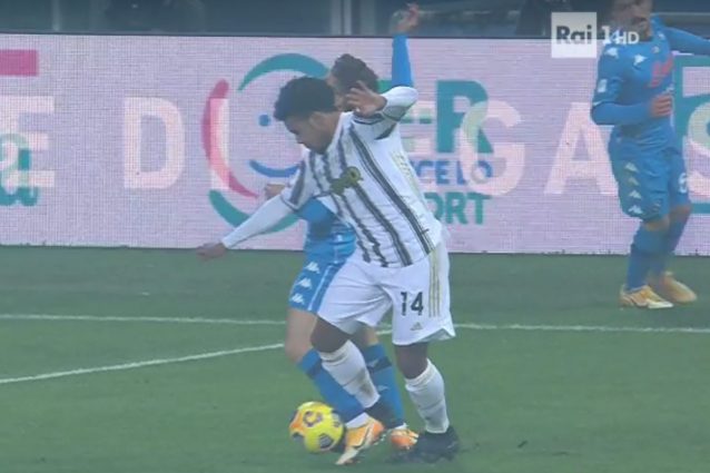 Gli episodi da moviola di Juventus-Napoli, finale di Supercoppa Italiana. Momento chiave a poco più di dieci minuti dal termine della partita: McKennie va per il rinvio, Mertens lo anticipa e mette il suo piede davanti al pallone. L'americano colpisce l'avversario che cade al suolo. Valeri lascia correre in un primo momento, poi concedere il rigore con il VAR.