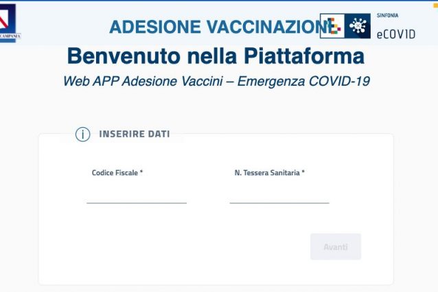 Prenotazione del vaccino Covid-19 in Campania: è operativa la piattaforma informatica d per l’adesione alla campagna di vaccinazione anti Covid-19 riservata alla popolazione campana oltre gli 80 anni di età. Al momento dell’adesione, è necessario fornire un indirizzo email e un recapito cellulare.
