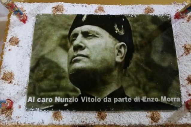 Una torta con il volto di Mussolini per una festa di pensionamento all'interno della Municipalità IV di Napoli: bufera a Gianturco. Il presidente municipale Giampiero Perrella: "Inaccettabile e deplorevole, prendiamo le distanze e condanniamo un gesto oltraggioso e anticostituzionale". Episodio che arriva a pochi giorni dalla giornata della Memoria.