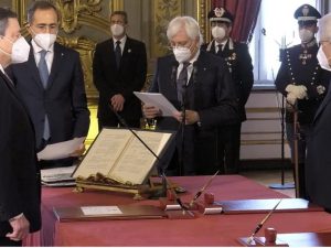 Il presidente del Consiglio, Mario Draghi, ha giurato al Quirinale. Ora il suo governo è ufficialmente in carica. Draghi ha giurato davanti al presidente della Repubblica, Sergio Mattarella, recitando la frase di rito: "Giuro di essere fedele alla Repubblica, di osservarne lealmente la Costituzione e le leggi e di esercitare le mie funzioni nell’interesse esclusivo della Nazione".