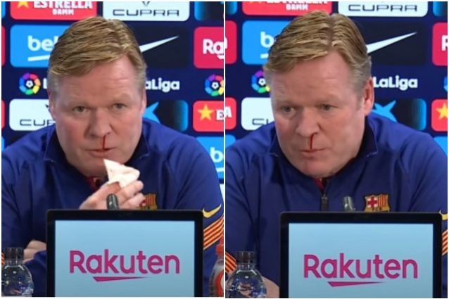 Una perdita di sangue dal naso ha costretto Ronaldo Koeman a interrompere la conferenza stampa di presentazione del match contro il Siviglia. Non è la prima volta che accade una cosa del genere, a causare l'epistassi sarebbe l'effetto di alcuni farmaci per cardiopatici che il tecnico, 58enne, assume da quando ha subito un'operazione al cuore.