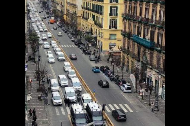 I tassisti sono la prima categoria a scendere in piazza in Campania per protestare contro la zona rossa: corteo di auto a passo d'uomo da Tangenziale a via Ferraris e poi lungo il Rettifilo e fino alle sedi di Comune e Regione. Obiettivo: ottenere nuovi aiuti una tantum per le famiglie rimaste senza reddito.