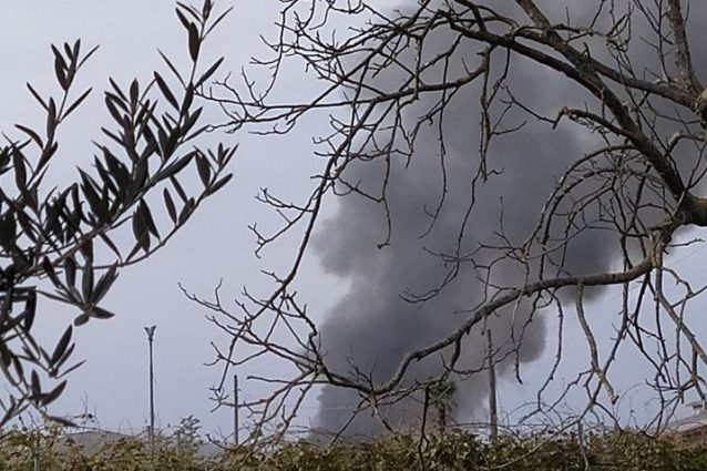 Località Boscofangone, Cicciano: alta colonna di fumo nero e denso a causa di un incendio appiccato per far sparire rifiuti industriali sversati giorni fa nell'area. Il fumo ha reso l'aria irrespirabile nelle campagne circostanti, tanto che i contadini al lavoro sono stati costretti ad allontanarsi.