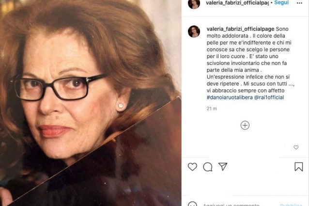 Valeria Fabrizi si scusa dopo la polemica nata in seguito alla sua ospitata nello show di Francesca Fialdini, dove ha utilizzato in maniera inappropriata il termine "neg*a", dalla spiccata connotazione razzista. L'attrice ha dichiarato di essere "addolorata" e ha aggiunto: "È stato uno scivolone involontario che non fa parte della mia anima".