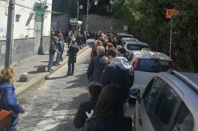 Lunghe code ieri al Vaccine Center anti-Covid19 della Mostra d’Oltremare di Fuorigrotta, dove si stanno facendo le somministrazioni anche ai pazienti fragili, in alcuni casi non deambulanti e accompagnati in carrozzina. Difficile mantenere il distanziamento, con attese anche di 3 ore. File anche alla Fagianeria del Bosco di Capodimonte, per l'attesa per l'arrivo dei flaconi di Pfizer.
