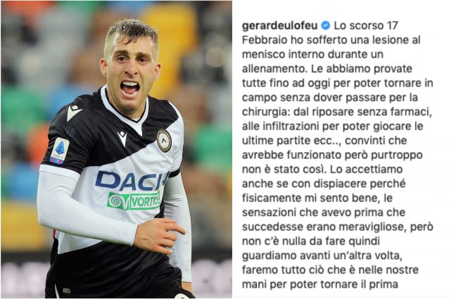 Gerard Deulofeu ha scritto un lungo post su Instagram in cui ha reso note a tutti i tifosi le sue attuali condizioni fisiche dopo l'ultimo infortunio a menisco nel mese di febbraio. L'attaccante dell'Udinese, ex Barcellona, Everton, Milan e Watford, ha sottolineato il suo rammarico: "Peccato, perché avevo ottime sensazioni per questa stagione".