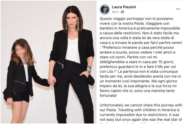 La cantante è volata negli Stati Uniti per la cerimonia degli Oscar 2021 che si svolgerà nella notte tra il 25 e il 26 aprile. Un viaggio che lei e il compagno Paolo Carta hanno affrontato senza la figlia Paola, nonostante la cantante avrebbe voluto averla con sé in un momento così importante. "Viaggiare con bambini in America è impossibile per via delle restrizioni". La Pausini sarà una delle protagoniste della serata e sul palco canterà "Io sì/Seen", il brano colonna sonora del film 'La vita davanti a sé' tra i primi cinque candidati alla miglior canzone.