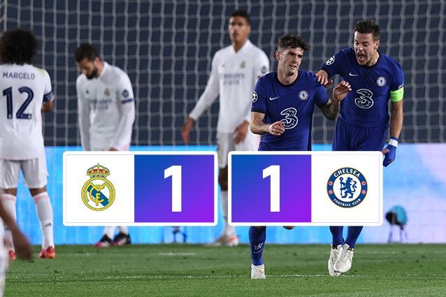 La gara di andata delle semifinali di Champions League tra Real Madrid e Chelsea finisce 1-1: si deciderà tutto tra 8 giorni, nel ritorno di Stamford Bridge. Il risultato è lo specchio di un match sostanzialmente equilibrato, deciso dalle reti di Pulisic e Benzema. Primo tempo vivace, ripresa in cui entrambe le squadre hanno dato la sensazione di gradire il pareggio che lascia tutto aperto.
