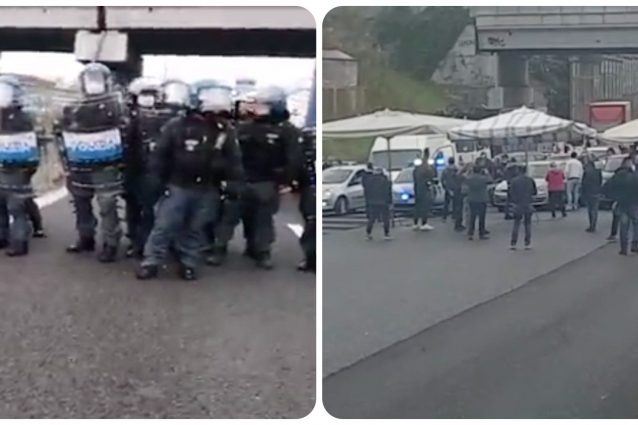 Protesta di ambulanti e mercati rionali contro l'applicazione da parte della giunta di Virginia Raggi della direttiva Bolkenstein. Camion a passo d'uomo nel centro di Roma per la manifestazione di piazza della Repubblica. Bloccato il Grande Raccordo Anulare: bancarelle in mezza alla carreggiata e traffico in tilt.