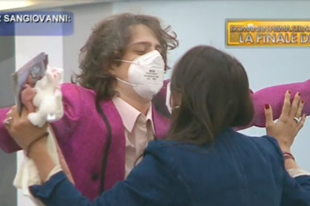 Sangiovanni riceve la sorpresa di sua sorella Andrea. Emozionato, corre ad abbracciarla e scopre di essere diventato zio della piccola Virginia, la figlia di sua sorella nata durante la sua permanenza nella scuola e non vede l'ora di poterla conoscere. Poi gli ultimi momenti dei ragazzi in casetta e i ringraziamenti per questo lungo percorso insieme: "Voglio ricordarvi come una cartolina". E infine uno scherzo per i cinque finalisti, convocati in studio dalla redazione: per loro gavettoni, bombe d'acqua e tante risate.