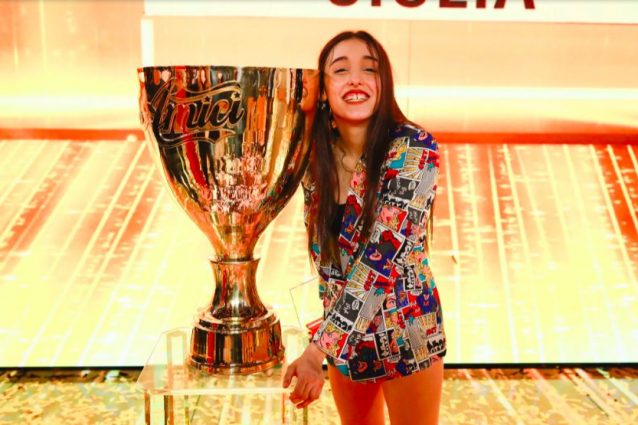 Giulia Stabile ha vinto Amici di Maria De Filippi 2021, si è ritrovata a sfidare il fidanzato Sangiovanni durante l'ultimissima sfida e alla fine si è aggiudicata il primo posto, spopolando con il suo talento e con la sua simpatia. Per l'occasione non ha rinunciato allo stile e si è presentata sul palco con una giacca cartoon super trendy.