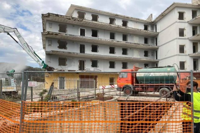 Abbattuto dopo 40 anni l'ecomostro American Palace di Castel Volturno, simbolo del degrado del litorale Domitio. Questa mattina sono entrate in azione le ruspe per demolire l'edificio di 23mila metri cubi di cemento, su mandato della Regione Campania, che ha raccolto l'appello della Procura di Santa Maria Capua Vetere.