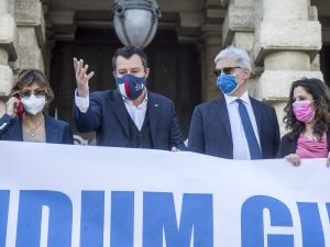 La Lega e il Partito Radicale hanno depositato in Cassazione i sei quesiti per la proposta di un referendum sulla giustizia. Il comitato promotore, guidato da Matteo Salvini e Maurizio Turco, prevede una sostanziale riforma del lavoro della magistratura, ma anche l'introduzione di un limite alla custodia cautelare e l'abolizione di parte della legge Severino sull'incandidabilità.