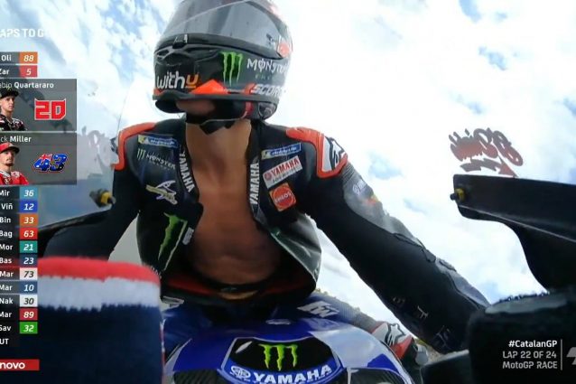 Dopo la protesta di Ducati e Suzuki, Fabio Quartararo è stato penalizzato al termine del Gran Premio di Catalogna per aver corso la parte finale della corsa con la tuta slacciata. La sanzione costa il quarto posto al pilota Yamaha, che ha terminato la gara senza le adeguate protezioni al petto. Il pilota francese su Instagram ha risposto così: "Congratulazioni a tutte le persone che vanno a lamentarsi in Direzione Gara per farmi ricevere un'altra penalità".