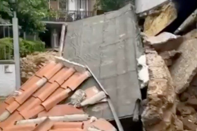 Momenti di paura al civico 30 di via Malcesine a Roma in zona Trionfale, dov'è crollato un muro a ridosso di un condominio, a causa dell'ondata di maltempo che ha imperversato ieri pomeriggio in città. Il crollo ha impedito l'accesso ai palazzi, garage allagati. Ore d'intervento per i vigili del fuoco.