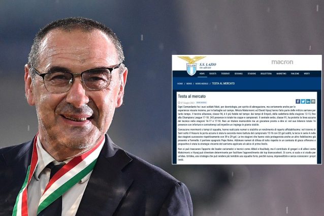 Maurizio Sarri è stato ufficializzato oggi dalla Lazio via social, ma il club aveva già anticipato la decisione alcuni giorni fa con un'altra comunicazione che sembrava essere finita online per errore. E' 'citata' nel 'rebus' proposto sul web e si riferisce al comunicato "Testa al mercato" dove venivano anticipati diversi elementi, tra cui i nomi dei giocatori che interessano al progetto.