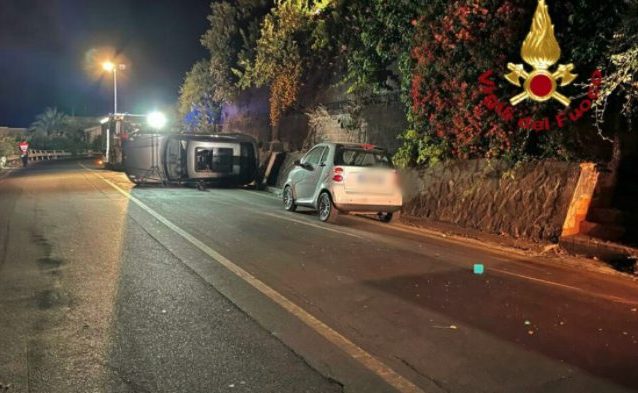 Una Porsche si è ribaltata sulla Strada Statale 114, tra Acitrezza e Acireale. L'autovettura, con a bordo 5 persone, si sarebbe scontrata con una Smart intorno all'una di notte. I 7 coinvolti sono riusciti ad uscire dalle auto prima che intervenissero i soccorsi. Tutti hanno riportato ferite lievi che non hanno richiesto particolari cure del 118.