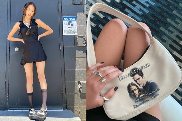 Olivia Rodrigo in passato aveva già rivelato di nutrire un profondo amore per la saga di Twilight e i suoi protagonisti, al punto da dedicare loro una canzone! Stavolta invece ha indossato un accessorio a tema: una borsa con Bella Swan e Edward Cullen!