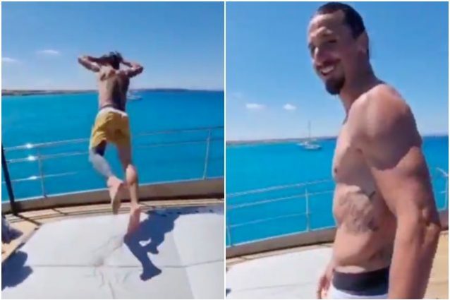 Zlatan Ibrahimovic è ancora in riabilitazione dopo l'intervento subito al ginocchio sinistro. "Si vola", dice sorridente mentre spicca il salto dallo yacht. Il calciatore ha subito un'operazione di cleaning articolare e dovrebbe essere a disposizione per la prima giornata del prossimo campionato di Serie A.