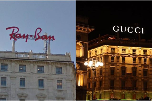 Addio all'insegna Ray-Ban, benvenuta luminosa Gucci. Cambia volto piazza del Duomo con l'avvicendamento delle due grandi firme di moda sul tetto del palazzo quasi dirimpettaio della cattedrale. L'insegna rosso fuoco viene smontata 12 anni dopo la sua installazione: era diventata parte integrante della città.