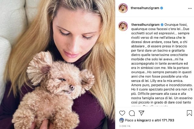Michelle Hunziker ha il cuore a pezzi per la morte di Lilly, uno dei due barboncini che da anni erano al suo fianco. La conduttrice non ha specificato i motivi dell'improvvisa scomparsa della cagnolina, ma ha mostrato sui social tutto il dolore per la sua scomparsa: "Ho sempre pensato in questi anni che non fosse possibile una vita senza di lei. Lilly era la mia amica. Amore puro, perpetuo e incondizionato". Al suo fianco restano il barboncino Leone e Odino, il cucciolo di levriero ultimo arrivato in famiglia.