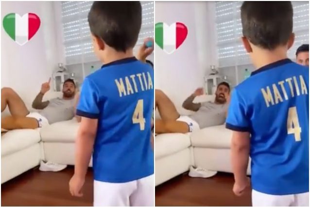 Leonardo Spinazzola assiste alla partita tra Italia e Spagna da casa. Vi è tornato dopo l'operazione subita per l'infortunio al tendine d'Achille della gamba sinistra. Accanto a lui c'è il figlio, Mattia. Insieme ripetono le strofe dell'inno nazionale Fratelli d'Italia, come si evince dal video pubblicato sui social.