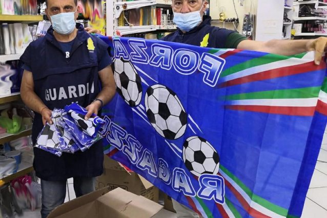 Controlli a tappeto della Guardia di Finanza, sequestrate migliaia di bandiere, sciarpe e gadget della Nazionale Italiana, che domani giocherà la finale dell'Europeo contro l'Inghilterra. Operazioni che continueranno per tutto il fine settimana: già nei giorni scorsi, altro intervento delle Fiamme Gialle con oltre 1 milione e mezzo di pezzi sequestrati.